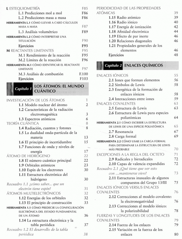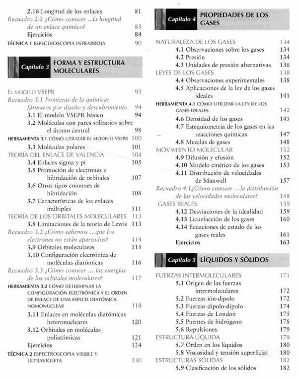 Los recuadros ¿Cómo conocer…? Presentan las técnicas y experimentos utilizados para determinar algunas de las propiedades fundamentales detalladas en el texto; las secciones de Técnicas describen importantes métodos experimentales e integran la clase, el laboratorio y el mundo; y los recuadros Fronteras de la química.