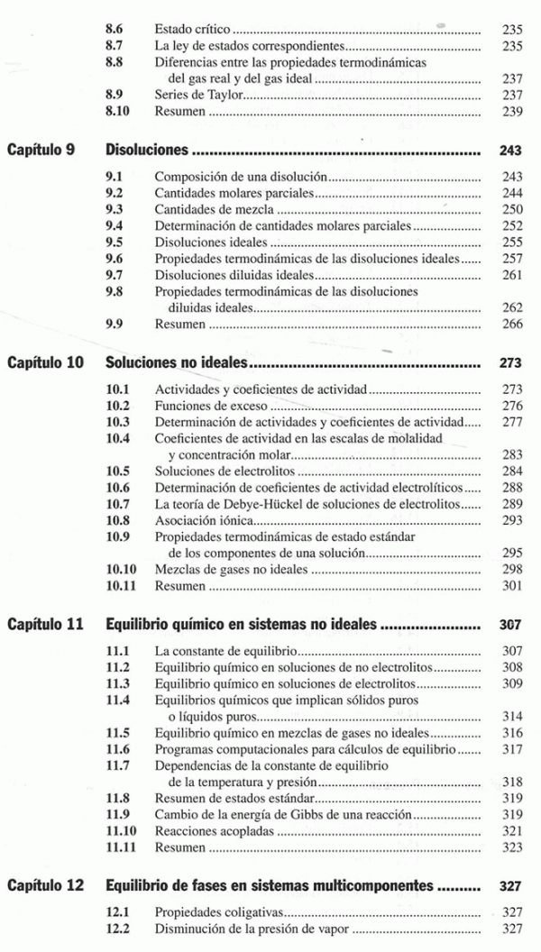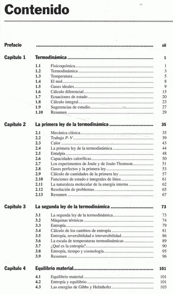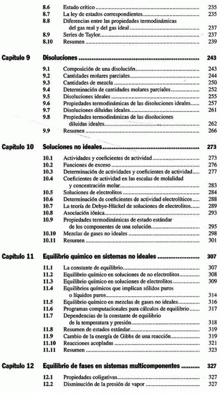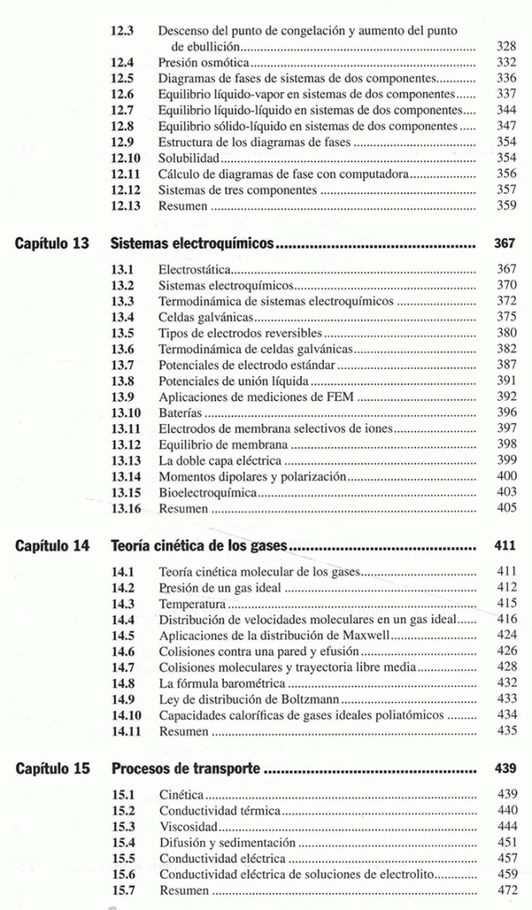 Principios de fisicoquímica cubre los temas básicos de un primer curso de fisicoquímica a nivel universitario. Para facilitar el seguimiento, este libro proporciona numerosas definiciones y explicaciones de conceptos, así como abundantes repasos de temas relevantes de matemáticas y física. Algunas mejoras que presenta esta nueva edición son: - Se agregaron numerosos problemas de repaso. - Los temas acerca de superficies se repartieron entre los capítulos 7 y 16 para hacer más claro su estudio. - Fueron ampliadas y actualizadas las siguientes secciones: nanopartículas (sección 7.6), polimorfismo en fármacos (sección 7.4) y reacciones de enzimas controladas por difusión (sección 16.17). Se conservan las características que han hecho de este un apoyo fundamental de la materia: - Cada capítulo cuenta con un resumen en el que se engloban los principales puntos. - Las ecuaciones fundamentales se destacan mediante un asterisco. - En este libro se repasan los temas relevantes tanto del cálculo como de la física. - La sección 2.12 contiene consejos para resolver problemas de fisicoquímica.