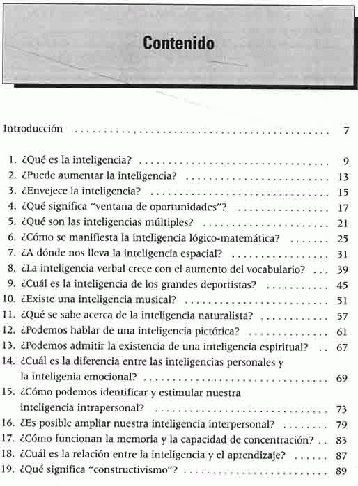 ¿Cómo influyen los estímulos en su desarrollo? ¿Qué son las inteligencias múltiples? ¿Cómo funciona la memoria? ¿Existen realmente las inteligencias emocionales? ¿Qué relación existe entre la perspectiva constructivista del aprendizaje y el estímulo de las inteligencias múltiples? ¿Cómo proceder para lograr la estimulación de las diversas inteligencias en la escuela, en la casa o en la vida diaria? El autor, docente y estudioso de este tema, ofrece respuestas y propuestas prácticas sumamente útiles para los docentes.