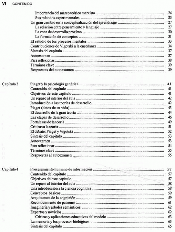 Obra en que se ofrece un panorama de las principales teorías sobre el desarrollo cognoscitivo: constructivismo, psicología soviética, psicología genética, procesamiento humano de la información, inteligencias múltiples y modificabilidad cognoscitiva, y metacognición.