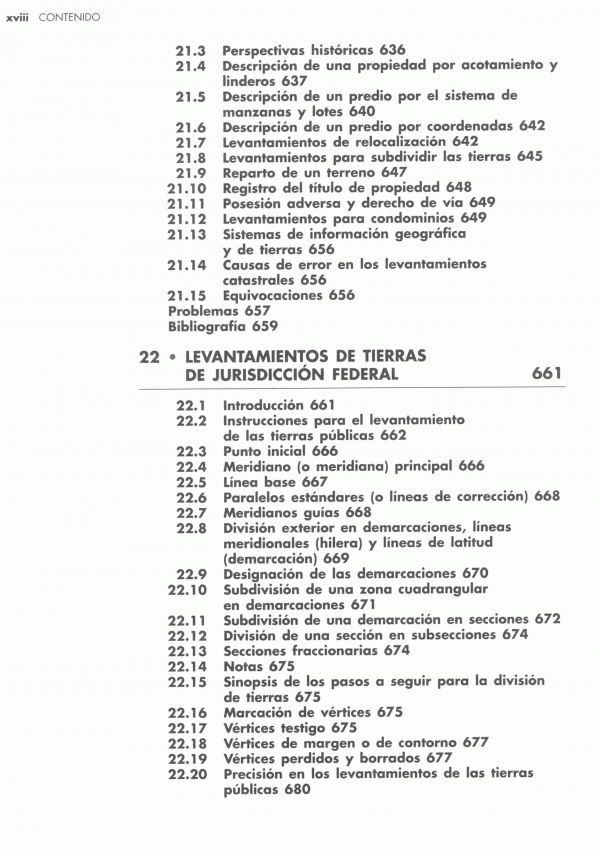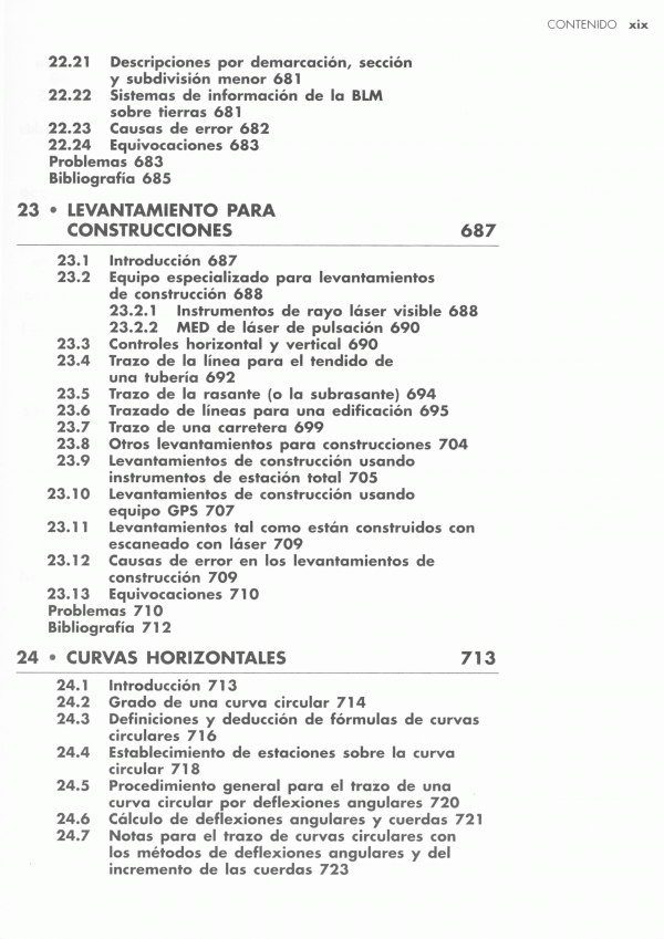 En esta undécima edición se presentan los conceptos básicos de cada una de la áreas fundamentales de la topografía moderna. Diseñada para servir como libro de texto en los cursos de topografía y de ingeniería del primero y segundo años de la carrera, en esta obra se enfatiza la teoría de errores en el trabajo de topografía, así como al final de cada capítulo se listan los errores y las equivocaciones comunes que están relacionados con el tema abordado. Para esta edición se han añadido secciones nuevas sobre instrumentos de escaneo con láser y sus aplicaciones, en los capítulos 16, 23 y 27; así mismo se han agregado procedimientos de cálculo para las proyecciones cartográficas en el capítulo 20.Además de los cambios mencionados, el material complementario que se encuentra en la página web del libro incluye versiones actualizadas de los programas Stats, WOLFPACK y Matriz, diseñados para cálculos estadísticos, cálculos para poligonales cerradas, abiertas, radicales; cálculos de áreas; reducción del acimut astronómico; transformaciones bidimensionales de coordenadas; cálculos de curvas horizontales y verticales; y ajustes con mínimos cuadrados.Diseñada para servir como libro de texto en los cursos de topografía y de ingeniería del primero y segundo años de la carrera, en esta obra se enfatiza la teoría de errores en el trabajo de topografía, así como al final de cada capítulo se listan los errores y las equivocaciones comunes que están relacionados con el tema abordado. Para esta edición se han añadido secciones nuevas sobre instrumentos de escaneo con láser y sus aplicaciones, en los capítulos 16, 23 y 27; así mismo se han agregado procedimientos de cálculo para las proyecciones cartográficas en el capítulo 20.Además de los cambios mencionados, el material complementario que se encuentra en la página web del libro incluye versiones actualizadas de los programas Stats, WOLFPACK y Matriz, diseñados para cálculos estadísticos, cálculos para poligonales cerradas, abiertas, radicales; cálculos de áreas; reducción del acimut astronómico; transformaciones bidimensionales de coordenadas; cálculos de curvas horizontales y verticales; y ajustes con mínimos cuadrados.Para esta edición se han añadido secciones nuevas sobre instrumentos de escaneo con láser y sus aplicaciones, en los capítulos 16, 23 y 27; así mismo se han agregado procedimientos de cálculo para las proyecciones cartográficas en el capítulo 20.Además de los cambios mencionados, el material complementario que se encuentra en la página web del libro incluye versiones actualizadas de los programas Stats, WOLFPACK y Matriz, diseñados para cálculos estadísticos, cálculos para poligonales cerradas, abiertas, radicales; cálculos de áreas; reducción del acimut astronómico; transformaciones bidimensionales de coordenadas; cálculos de curvas horizontales y verticales; y ajustes con mínimos cuadrados.