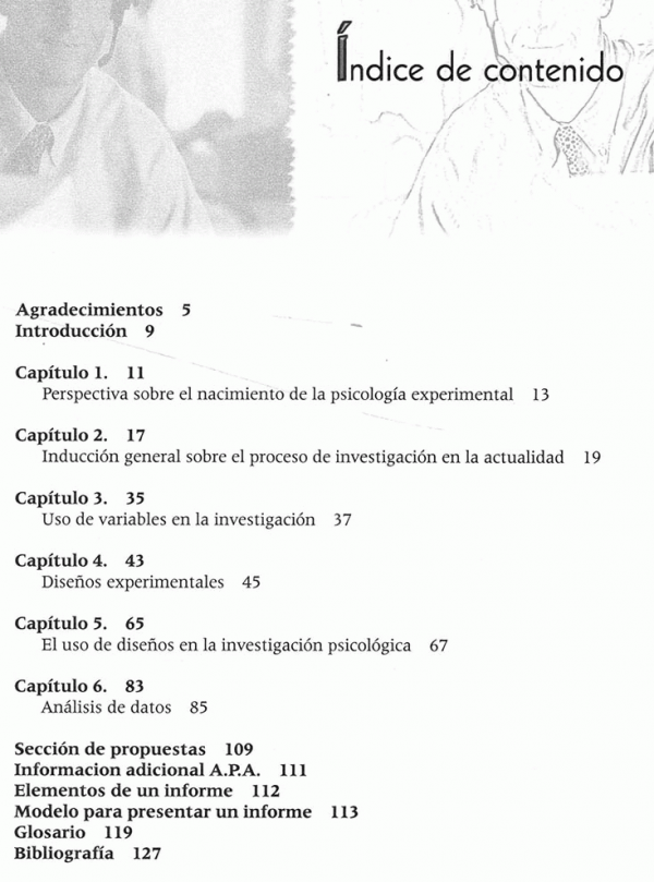 Perspectiva sobre el nacimiento de la psicología experimental, introducción general sobre el proceso de investigación en la actualidad, uso de variables en la investigación, diseños experimentales, el uso de diseño en la investigación psicológica, análisis de datos.