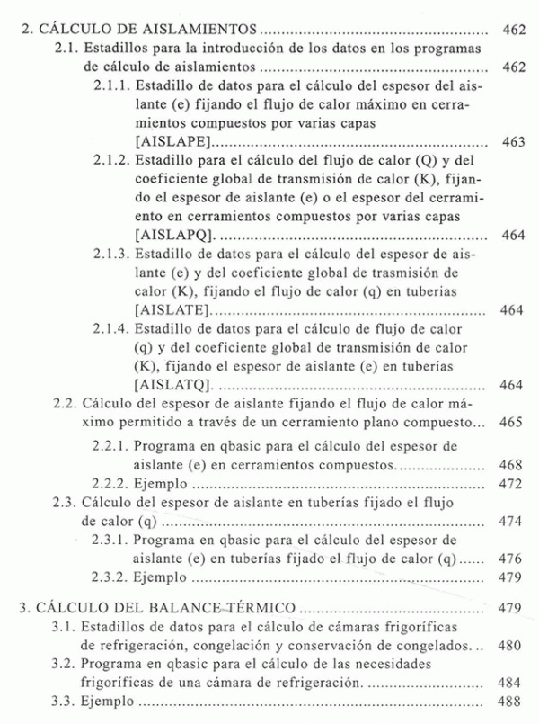 Aislantes térmicos en instalaciones frigoríficas, calculo practico de aislamiento en instalaciones frigoríficas, reglamentos y normas aplicables a los aislamientos, construcción de cámaras frigoríficas, reglamentación técnico-sanitaria sobre las condiciones generales de almacenamiento frigorífico de alimentos, norma general relativa a los alimentos ultracongelados destinados a la alimentación humana, calculo de balance térmico de una instalación, túneles de enfriamiento rápido, aplicaciones informáticas para el calculo de aislamientos y del balance térmico en cámaras frigoríficas, contenido mínimo en los proyectos de instalaciones frigoríficas.