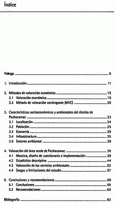 Valorización Económica de Servicios Ambientales: El caso de pachacamac, Lurín / Elsa Galarza, Rosario Gómez [Impreso] 68 Documento de trabajo