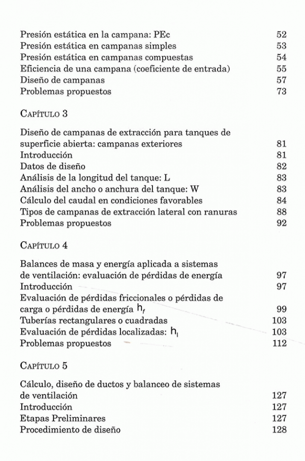 Fundamentos de ventilación industrial, diseño de campanas de extracción localizada, diseño de campanas de extracción para tanques de superficie abierta: campanas exteriores, balances de masa y energía aplicada a sistemas de ventilación: evaluación de perdidas de energía, selección de ventiladores.