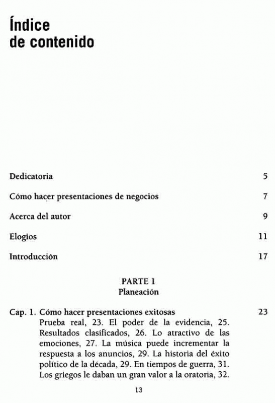 E l objetivo principal de una empresa es conseguir la aceptación de sus clientes y de los medios para lograrlo son las presentaciones de negocio . A través de ejemplos, esta guía muestra a gerentes y administradores como hacer una presentación exitosa.