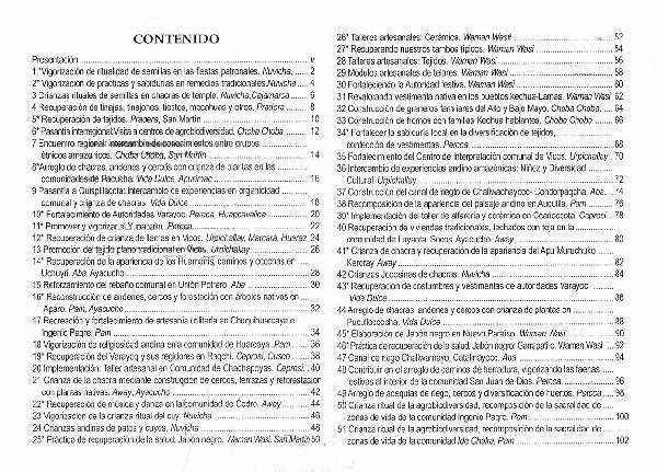 TextoIdioma: Español Lima - Perú: PRATEC, Proyecto Andino de Tecnologías Campesinas 2005Edición: [Primera edición]Descripción: 211 páginas : Ilustraciones fotos a colores ; 23.5 x 17 centímetrosISBN: - 9972646467
