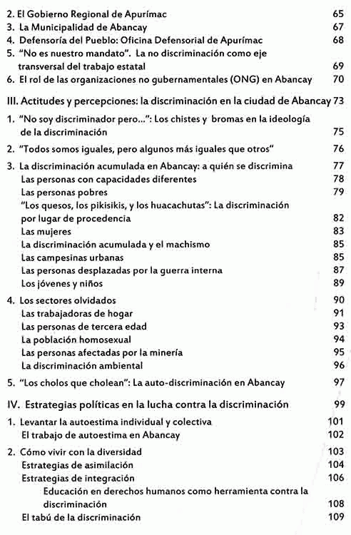 En el presente diagnostico, sostenemos que , para ser debidamente combatida, la ideología de la discriminación debe ser comprendida en toda su complejidad. Por ello, entendiendo que la discriminación es casi siempre acumulada, es decir, que responde a construcciones complejas y cambiantes de acuerdo al contexto de quien es "débil" o "fuerte", nos proponemos analizar de que manera la ideología de la discriminación construye e impone quien es "débil" en la ciudad de Abancay, Apurimac.