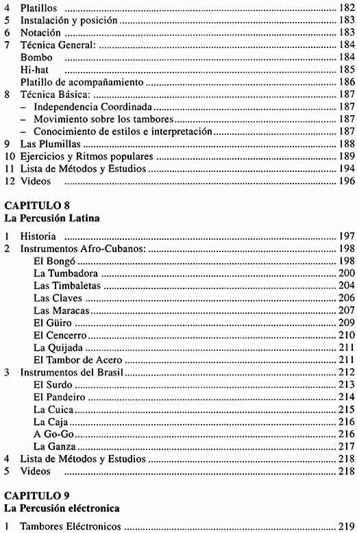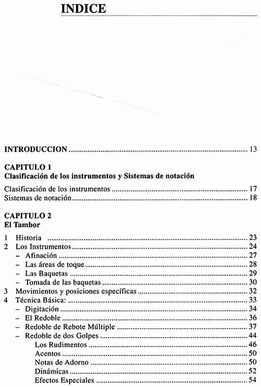 El Manual de Percusión es un texto guía para el estudiante de percusión d cualquier nivel de enseñanza. Incluye abundante información respecto de los instrumentos, las diferentes técnicas de ejecución y los diversos estilos en que participan. Todos estos antecedentes se complementan con fotos, ilustraciones, ejemplos de repertorio y arreglos de piezas para solista y conjuntos de percusión. Aporta, ademas, anexos con glosario de términos extranjeros, sustitución de instrumentos y discográfica especifica.