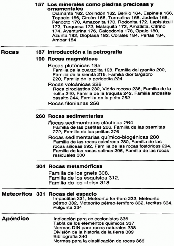 En ese libro se encuentra una amplia información sobra mas de 600 minerales, rocas,meteoritos,. La clara disposición y excelente presentación de la obra garantizan el fácil manejo y una exacta determinación.