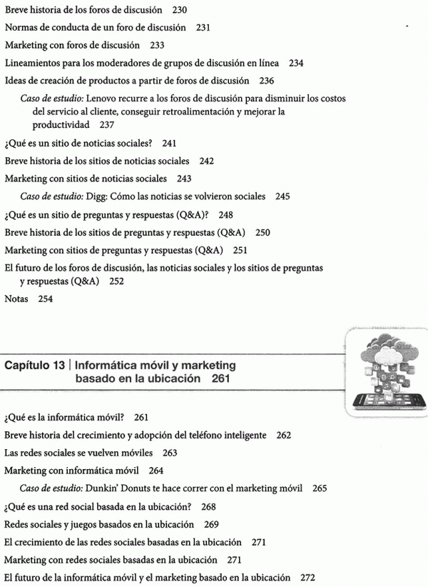 Marketing para Medios Sociales. Un planteamiento estratégico es un libro de texto pionero en el campo y cuenta con una distintiva base conceptual y una estrategia práctica para desarrollar planes de marketing para medios sociales.Aborda las reglas de compromiso y la ética de los medios sociales para comportarse adecuadamente como especialistas en marketing en la red social. Con estos lineamientos en mente, se examinan a detalle las tácticas de marketing más productivas de cada una de las principales plataformas de me dios sociales. Estas tácticas de plataforma específica, junto con todo el material de procedimiento incluido en el libro, se unen en el capítulo final para crear un plan de marketing exhaustivo para medios sociales, con explicaciones e ilustraciones detalladas de un plan aplicado en el mundo real. Se considera ampliamente el monitoreo, la evaluación y la mejora de la implementación de las iniciativas de marketing para medios sociales.Además se introducen y explican las mediciones cuantitativas y cualitativas de medios sociales más útiles, junto con diferentes formas de calcular el retorno sobre la inversión de una organización a partir de las actividades de marketing para medios sociales.Revisión técnica: Mtra. María de los Ángeles Ramos Solano
