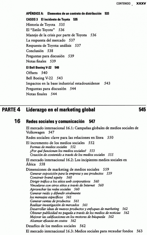 Marketing Internacional; 10ª Ed. Se ha convertido en un texto necesario para quienes desean aprender o están inmersos en el ambiente del Marketing y los Negocios Internacionales. La adaptabilidad que han logrados los autores al entorno real hace de la lectura de este título, un aprendizaje dinámico y útil para estudiantes en Nivel Superior y Posgrado. El libro abarca temas de marketing que van desde la puesta en marcha de Operaciones a Nivel Internacional, las consideraciones que existen de entrada a Nuevos Mercados, hasta el análisis de situaciones a las que se enfrentan los mercadólogos en el ámbito global.