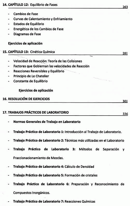 La química, evolución de la alquimia, comprende el estudio de la materia y los cambios que ocurren en ella. Este libro no es un tratado, sino una introducción al estudio de la química y sus aplicaciones prácticas. Está dirigido a los alumnos de grado y es apto para el dictado de cursos relacionados con esta área. Sus capítulos recorren en forma gradual y secuenciada los orígenes de esta materia, sus conceptos básicos, las hipótesis planteadas y los procedimientos aplicables en el laboratorio. De suma utilidad para el estudiante resultan los ejemplos prácticos, con ejercicios resueltos, que ayudan a comprender los fenómenos químicos y facilitan la interpretación de los resultados expuestos. La riqueza de esta obra radica en su lenguaje claro, sencillo y directo que permite abordar cualquier área disciplinaria que tenga a la química como base de su desarrollo.