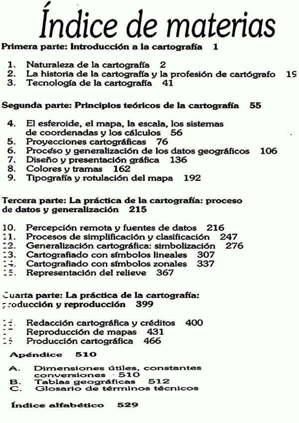 Arthur H. Robinson Este libro supone, sin duda, una aportación decisiva tanto por su papel de sólida iniciación para el futuro cartógrafo como por su función informativa y auxiliar para todo el amplio abanico de especialistas que se relacionan con los mapas. La obra está articulada en forma de manual, perfectamente estructurada, y su contenido logra un exquisito equilibrio entre los distintos temas y entre lo teórico y lo práctico. En la edición castellana se ha cuidado especialmente el vocabulario técnico.
