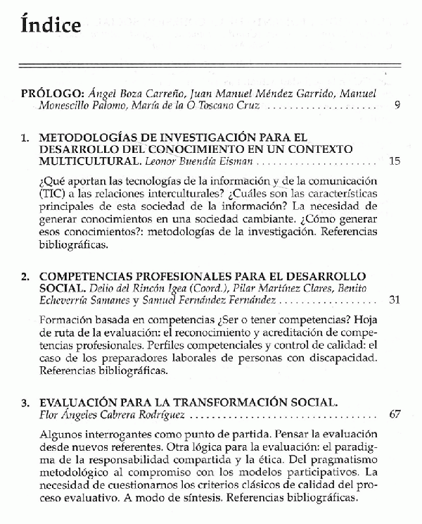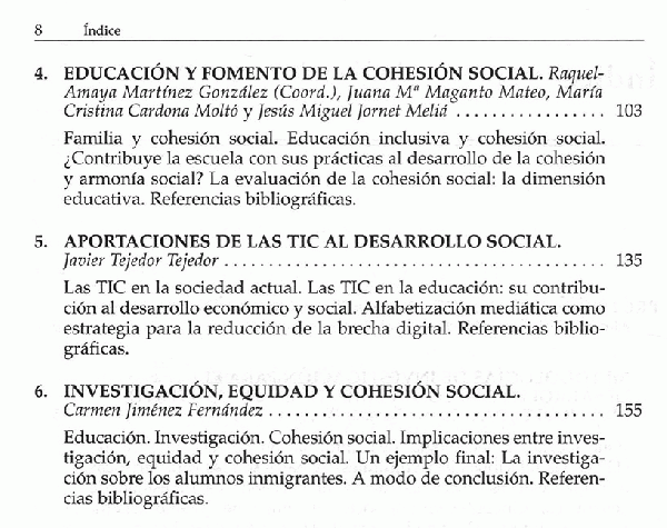 El libro analiza el papel de las competencias profesionales en el desarrollo social. El libro analiza también las políticas de fomento de la cohesión social desde instituciones internacionales.
