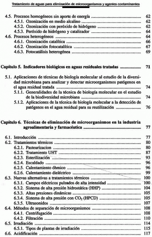 Tras la publicación de la Directiva 271/91 CEE en materia de depuración de aguas, una vez alcanzados unos mínimos en cuanto a exigencias de contaminación en los vertidos, el futuro hacia el que apunta la Directiva Marco del Agua es el de ir aún más allá en cuanto a protección del entorno en materia de vertidos. Así, la normativa en materia de nutrientes, cada vez más exigente, las necesidades, normativa y oportunidad de la reutilización de aguas residuales, y la necesidad de ampliar muchas de las depuradoras existentes, hacen que en el momento actual en muchas ocasiones se requiera la implantación de sistemas avanzados de tratamiento. En esta línea se presentan en este libro posibles sistemas de inertización biológica para la reutilización de aguas residuales que se están utilizando en los actuales sistemas de desinfección en los tratamientos de aguas, así como otros aspectos relacionados: legislación, procesos avanzados, indicadores biológicos, limitación de los distintos sistemas de desinfección, etc.