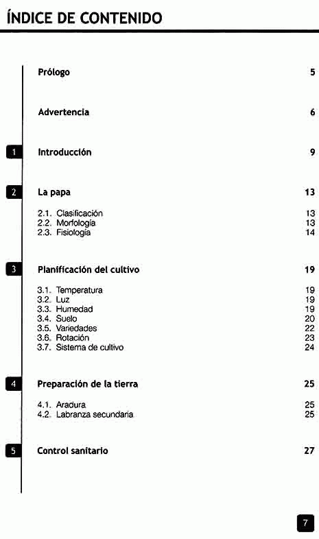 En este siglo, en el que la población mundial aumenta día a día, la producción de papa constituye un factor importante tanto para satisfacer las necesidades alimentarias de la población de un país, como para su crecimiento económico. En este libro del área Producción Vegetal se describen los requisitos ambientales y los métodos de implantación, manejo, protección y cosecha del cultivo de la papa, para contribuir con los agricultores a la obtención de alimentos útiles al hombre.