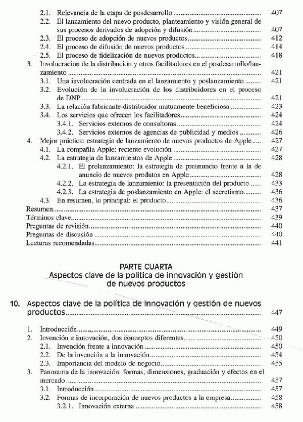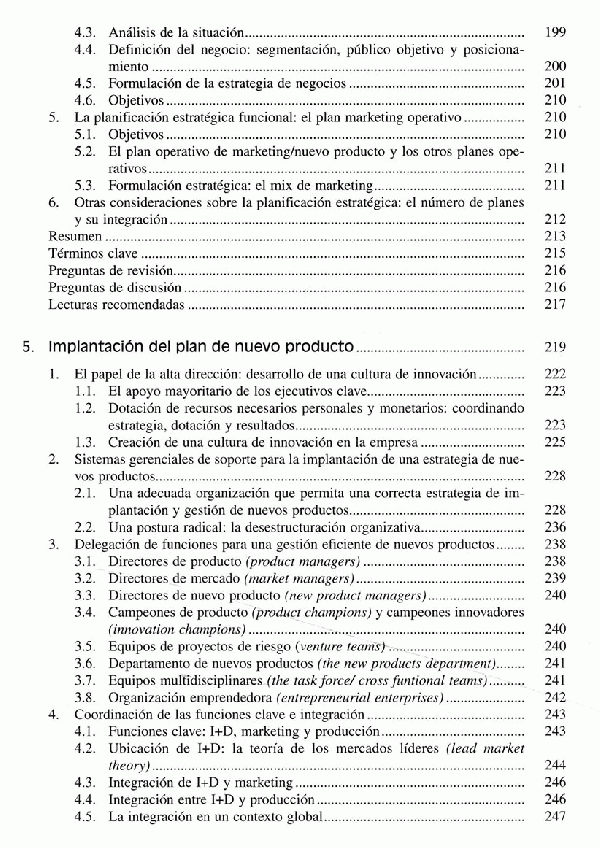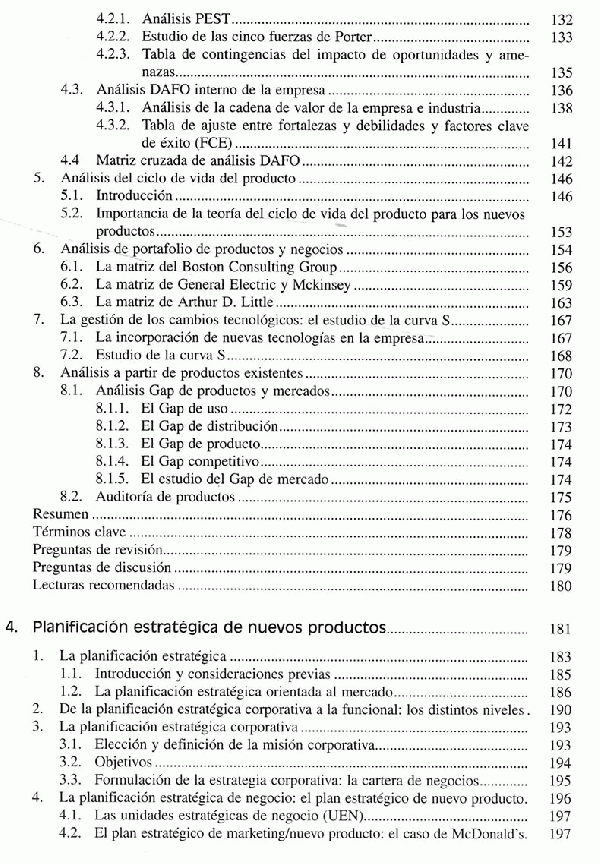 Ayudar a las empresas a mantener una permanente juventud y una senda de crecimiento en un mundo convulso y altamente competitivo, es el propósito de esta obra. Es precisamente con la introducción de nuevos productos cuando las empresas rejuvenecen y cobran vida evitando su obsolescencia y mortandad. Así, el cambio aquí propuesto hacia una dinámica de innovación e introducción de nuevos productos se impone, y lo hace bajo una filosofía empresarial de orientación al mercado. Además, esta filosofía se presenta bajo un triple enfoque integrando las visiones del mercado, la técnica y la cultural. El libro consta de diez capítulos repartidos en cuatro partes principales. Comienza con una introducción y se expone el marco conceptual. A continuación se presentan, en la segunda parte, tres capítulos sobre la planificación e implantación estratégica de nuevos productos, actividades de la alta dirección. En la tercera parte, de cuatro capítulos, se muestra el proceso de desarrollo y comercialización de nuevos productos, tema central del libro. La cuarta parte presenta los aspectos clave de la política de innovación y gestión de nuevos productos, consideraciones éticas y, como cierre, se incluye un ejemplo de próximas prácticas. Finalmente, una extensa bibliografía y un índice de nombres y materias completan la obra.