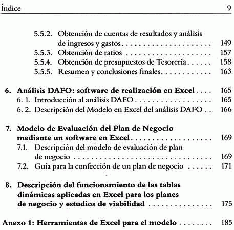 La confección y análisis de empresa y de viabilidad son imprescindibles para asegurar que la empresa va en la dirección más adecuada. Esta obra incluye un software en formato EXCEL que le permitirá confeccionar proyecciones financieras a varios años (balances, cuentas de pérdidas y ganancias, tesorería y ratios) y poder comparar los diferentes escenarios. También permite preparar análisis complementarios como el DAFO y otros que se necesitan en el proceso de preparar y evaluar un plan de empresa. El libro contiene también un detallado manual de funcionamiento del software para facilitar el uso de la aplicación. Y es el primer modelo de plan de negocio que se puede analizar mediante las tablas dinámicas de Excel, obteniendo indicadores, cuadros evolutivos y gráficos muy útiles para el lector.
