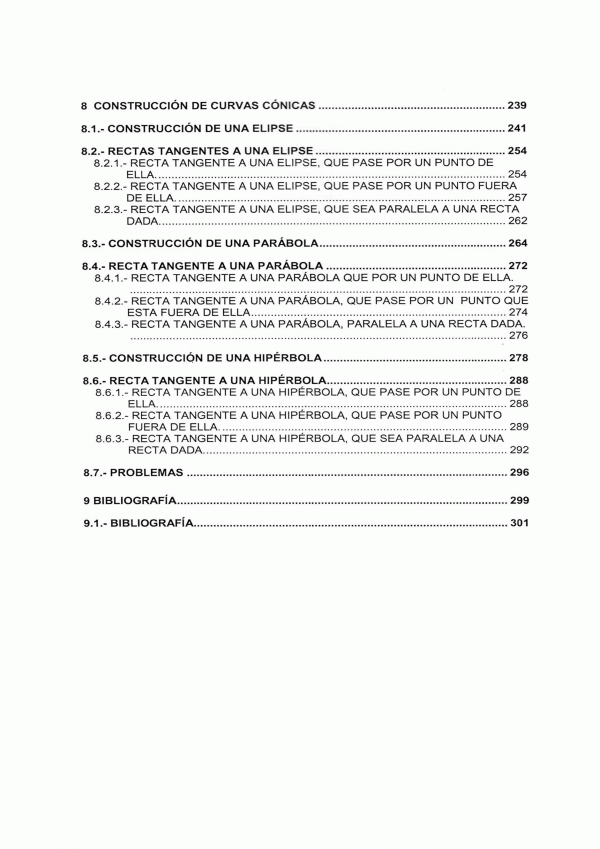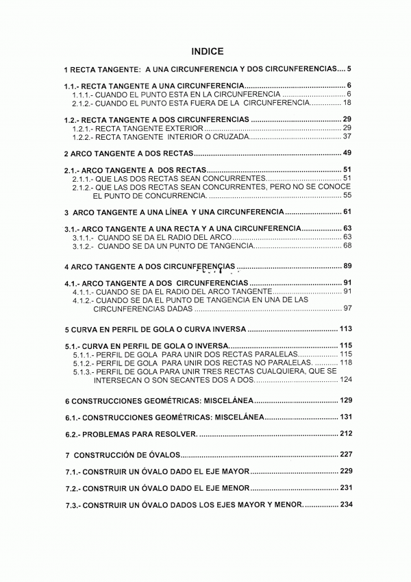 Recta tangente: A una circunferencia y dos circunferencias - Arco tangente a dos rectas - Arco tangente a una línea y una circunferencia - Arco tangente a dos circunferencias - Curva en perfil de gola o curva inversa - Construcciones geométricas: miscelánea - Construcción de óvalos - Construcción de curvas cónicas - Bibliografía.
