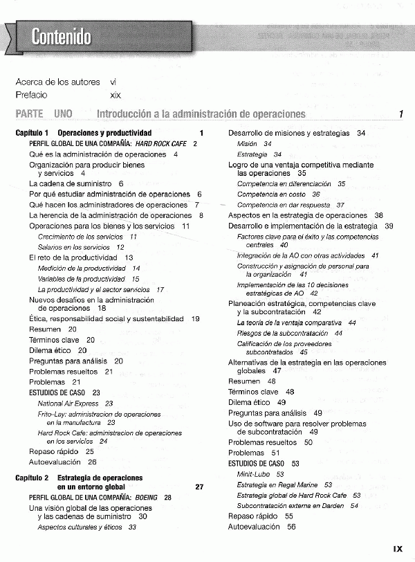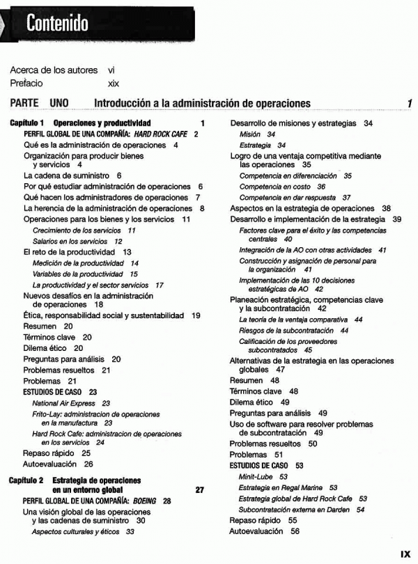 Esta nueva edición de Principios de administración de operaciones ofrece una visión vanguardista de la función de operaciones; las cuales constituyen un área emocionante de la administración que tiene un efecto profundo en la productividad; de hecho, pocas actividades tienen tanto impacto en la calidad de nuestras vidas. El objetivo de este libro es presentar una amplia introducción al campo de las operaciones de una manera realista y práctica.