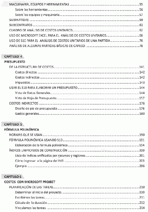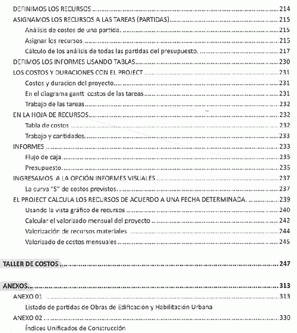 La presente publicación pretende explicar y desarrollar los principales programas informáticos (como Microsoft Excel, S10 y Project) para su aplicación en los diferentes trabajos de ingeniería, y que estos se conviertan en una herramienta de ayuda en la elaboración de proyectos, haciendo hincapié en el tema de presupuestos (análisis de costos, gastos generales, utilidades, etc.). Este libro tiene el objetivo de hacer un esbozo de cómo usar los programas informáticos Excel, S10 y Project en los trabajos de ingeniería. Por ello, se desarrollan temas relacionados a estructura de costos de un proyecto, análisis de costos unitarios y costos totales, presupuesto, gastos generales y utilidades, entre otros. Este libro está dirigido a estudiantes y profesionales de la industria de la construcción y afines.