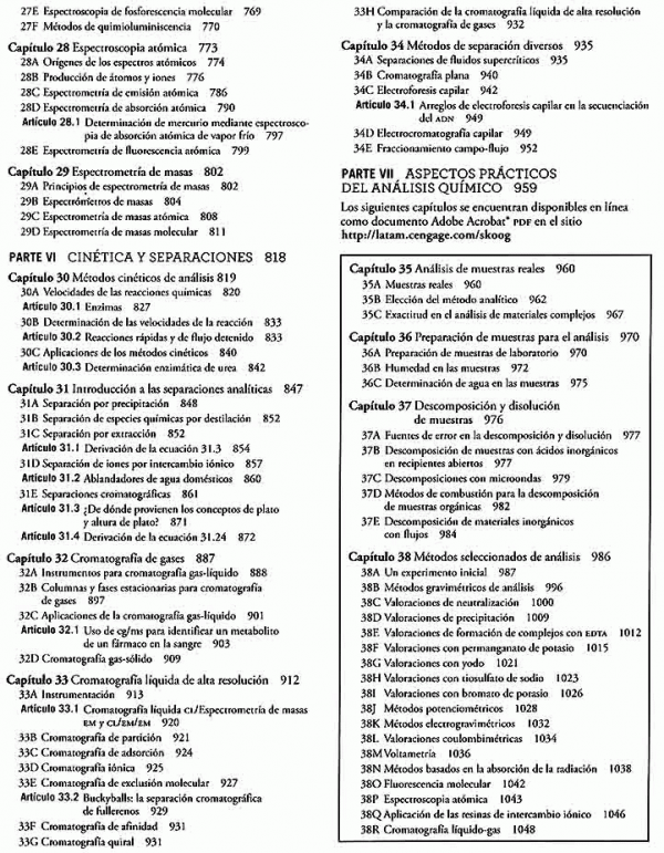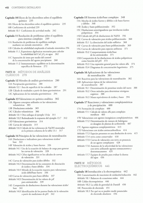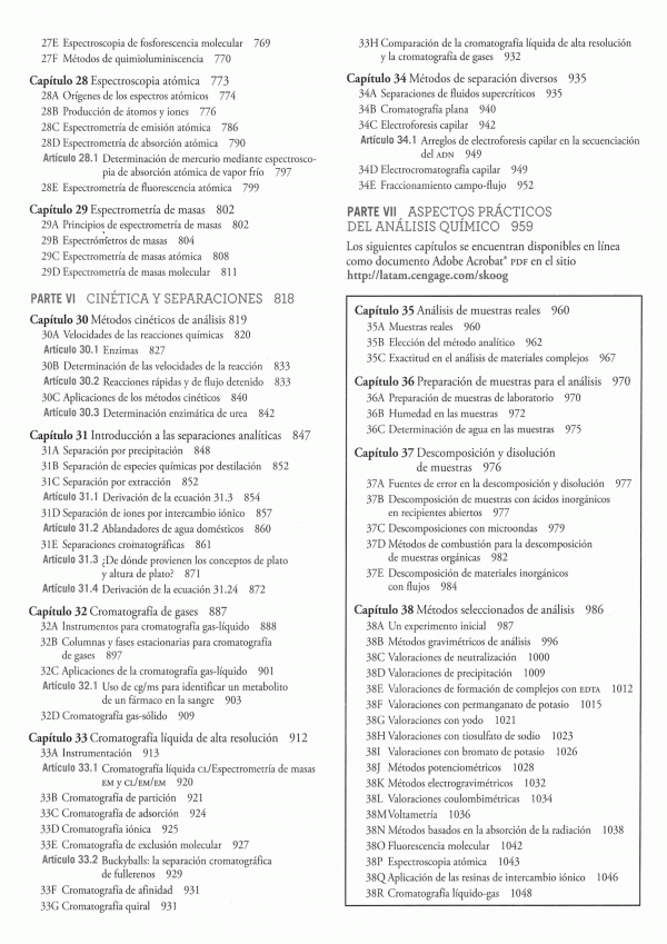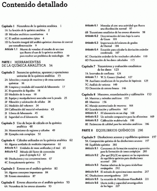 Fundamentos de química analítica, novena edición, es un libro de texto introductorio diseñado principalmente para cursos de nivel superior. En esta edición se han incluido aplicaciones en los campos de la biología, la medicina, las ciencias de materiales, la ecología, las ciencias forenses y otras áreas relacionadas.El objetivo primordial de este texto es proporcionar un profundo conocimiento sobre los principios químicos que son particularmente importantes para la química analítica. Busca que los estudiantes desarrollen y evalúen la precisión y la exactitud de los datos experimentales. Los estudiantes desarrollarán las habilidades necesarias para resolver problemas analíticos cuantitativos y, cuando sea adecuado, utilizarán las poderosas herramientas de las hojas de cálculo para resolver problemas, efectuar cálculos y crear simulaciones de fenómenos químicos