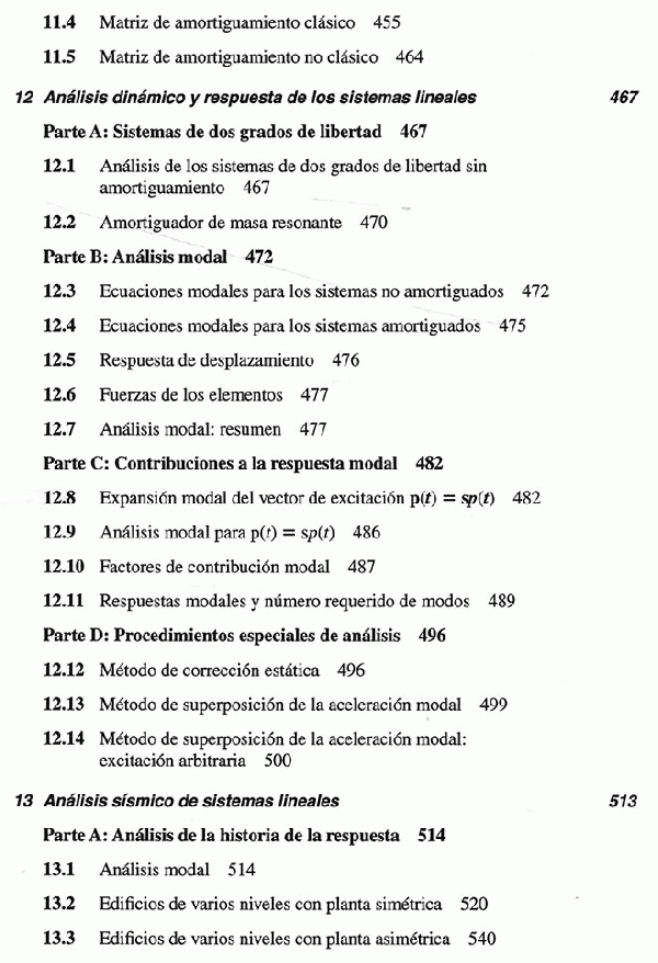 El libro presenta material sobre vibraciones y la dinámica de las estructuras, y demuestra su aplicación a los movimientos estructurales causados por los sismos, con numerosos ejemplos ilustrativos resueltos.