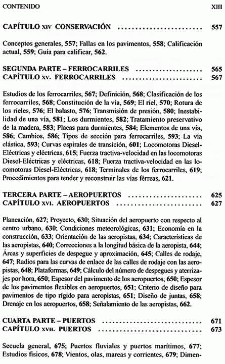 Esta obra es de gran utilidad en la práctica de Ingeniería Civil, ya que cubre los diferentes temas que se exigen en los programas del área de los transportes; sirve de consulta para los ingenieros que se dedican a los más importantes trabajos en diseño, construcción y conservación de vías de comunicación con técnicas menos sofisticadas y más baratas que las empleadas en países con grandes recursos económicos. Se presentan, de manera sencilla y didáctica, los aspectos principales de la materia; además tiene la gran ventaja de que los temas se pueden dividir y adaptarse a los diversos programas de las universidades, sin que por ello se pierda la coherencia en la exposición.