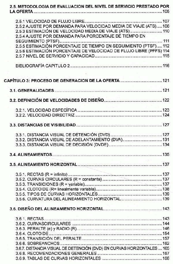Comprende seis capítulos: Caracterización de la Demanda, Caracterización de la Oferta, Proceso de Generación de la Oferta, Drenaje, Movimiento de Suelos y Evaluación de Proyectos, con los que se brinda un amplio panorama sobre lo que se debe hacer en Diseño Geométrico Vial en zona rural.