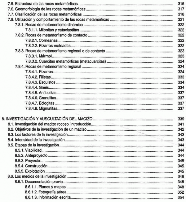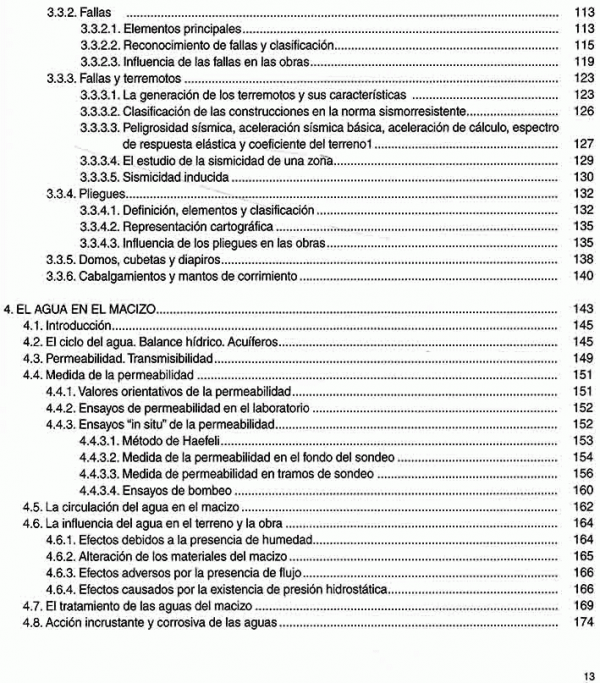 Este libro se estructura en cinco apartados. En el primero, capítulo 1, se aborda, de manéra muy breve, cómo se reflejan los aspectos relacionados con el terreno en la normativa general de la ingeniería civil (presas, carreteras, hormigón, etc.)En el segundo apartado, capítulos 2, 3 y 4, se trata de los aspectos esenciales del macizo rocoso: matriz rocosa, discontinuidades -principalmente tectónicas- e influencia de la presencia de agua. Se resumen los ensayos de laboratorio, estudios, procedimientos para abordar los problemas que se suscitan y posibles soluciones.En el tercer apartado, capítulos 5, 6 y 7, se analiza la utilización y comportamiento de los distintos macizos rocosos, constituidos por rocas ígneas, sedimentarias y metamórficas.El capítulo 8 se centra en las investigaciones del terreno, abarcando desde la adquisición de documentación previa hasta los ensayos.Finalmente, el último apartado, capítulo 9, trata de las clasificaciones de los macizos rocosos más utilizadas.Se trata de una obra de interés para los profesionales de la construcción, ingenieros y oficinas de proyectos, pero también indispensable para los estudiantes de esas disciplinas. Es el único libro sobre geologia aplicada de una cierta extensión escrito por un autor español.Esta obra obtuvo el premio al mejor libro de texto de la universidad politecnica de Madrid.