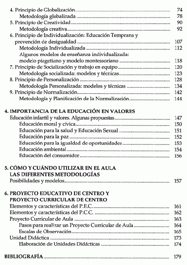 La obra se completa con una explicación pormenorizada sobre qué es el Proyecto Educativo de Centro y el Proyecto Curricular del Aula. Describe también qué son y cómo se elaboran Unidades Didácticas y propuestas para la educación en valores en educación infantil.