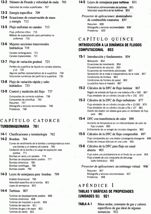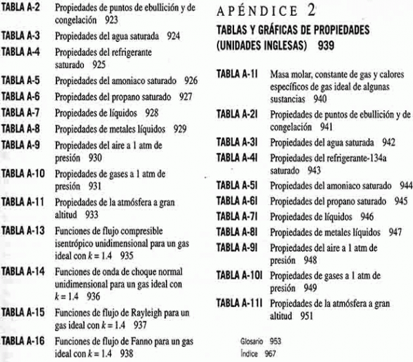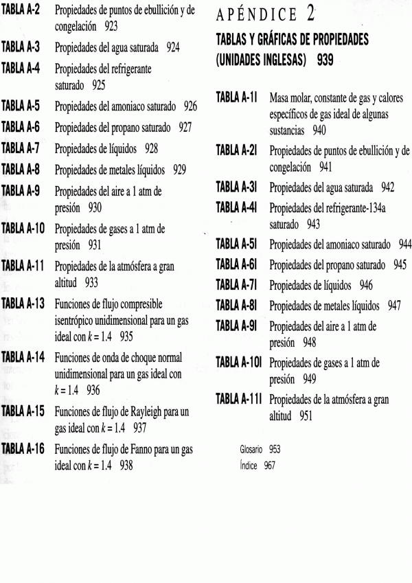 Apéndice 1: Tablas y gráficas de propiedades (Unidades SI) / Apéndice 2: Tablas y gráficas de propiedades (Unidades inglesas) / Glosario / Índice.