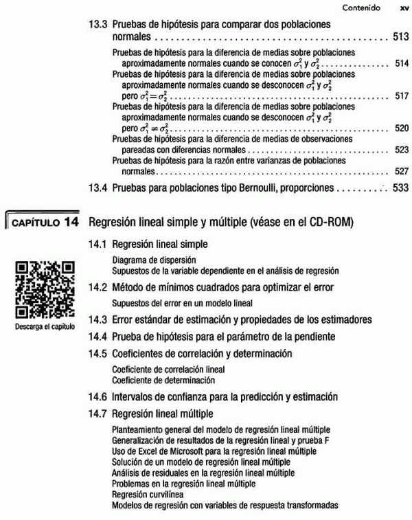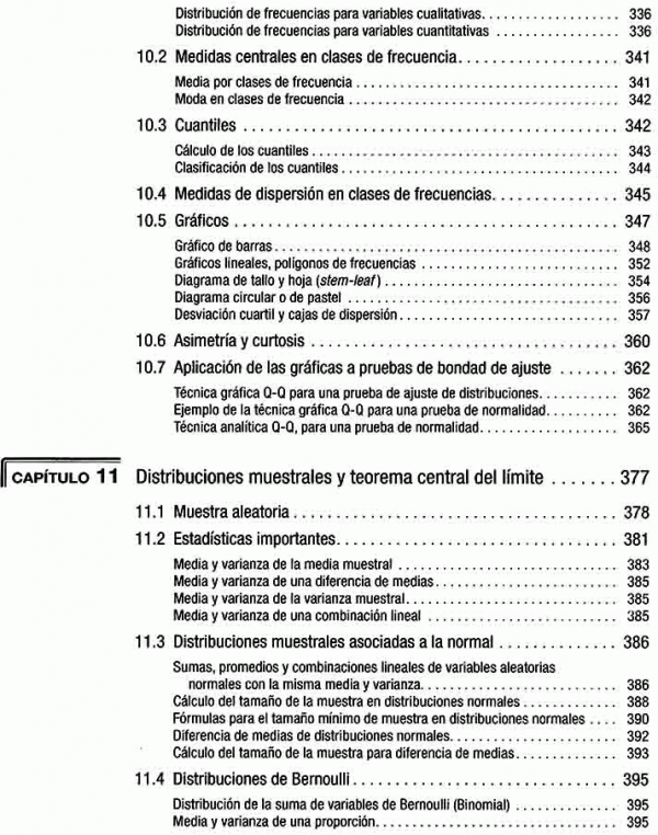 "Existen muchos libros de probabilidad y estadística para ingenieros, pero su enfoque centrado en las aplicaciones interdisciplinarias solo ayuda a que los futuros ingenieros aprendan a utilizar las herramientas de la probabilidad y estadística en la toma de decisiones. En contraste, a lo largo de este texto se presentan ejemplos resueltos con detalle, así como los teoremas que refuerzan cada uno de los conceptos. También se incluyen más de 500 problemas para que sean resueltos por los alumnos; como herramienta de apoyo para la solución de los problemas se utiliza Excel. Cada uno de los catorce capítulos incluye ejemplos, problemas, esquemas y tablas. Además, el texto cuenta con un CD-ROM donde el alumno podrá acceder a diferentes tipos de simuladores y tablas que le ayudarán en la solución de problemas y toma de decisiones. "