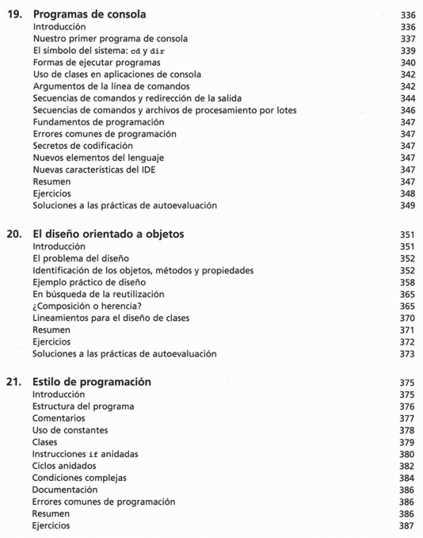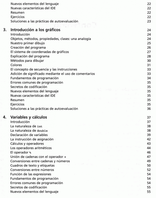 El libro explica cómo utilizar objetos desde los primeros capítulos. La metodología empieza por brindar definiciones sobre los conceptos de variables, asignaciones y métodos, para después usar objetos creados a partir de clases de biblioteca.