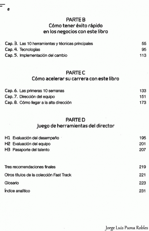 La innovadora serie Fast Track le proporciona lo que usted necesita para acelerar su progreso y convertirse en un administrador de alto desempeño en todas las áreas importantes de los negocios. Fast Track es en distintas formas, un recurso de pensamiento, métodos y técnicas empresariales; en pocas palabras, otorga un completo ambiente de apoyo que permite a los administradores optimizar el desempeño de su equipo y de su carrera profesional. En cada libro de esta serie se combinan importantes consejos prácticos, de profesionales expertos, con la visión y los últimos conocimientos de los estudiosos de las principales escuelas de negocios. El enfoque Fast Track será de utilidad para directores y líderes de equipos y para administradores de todos los sectores y áreas funcionales de la industria.