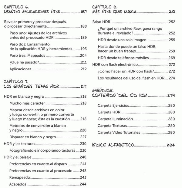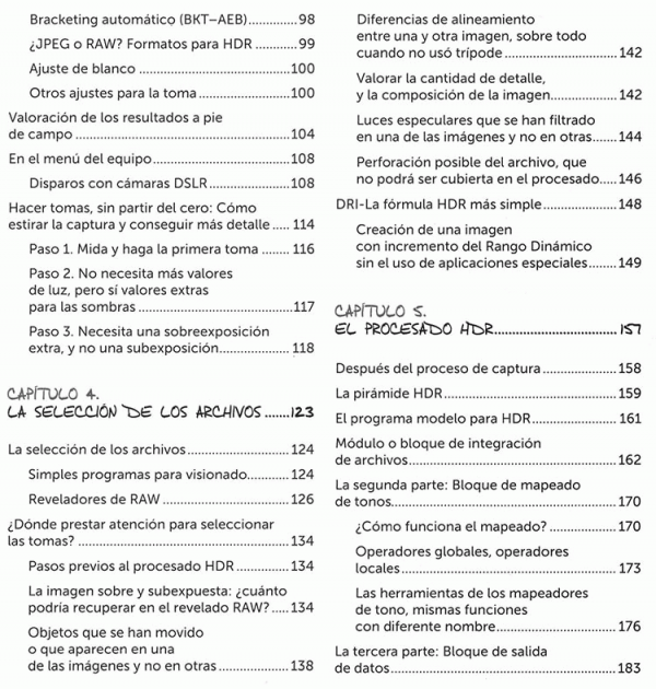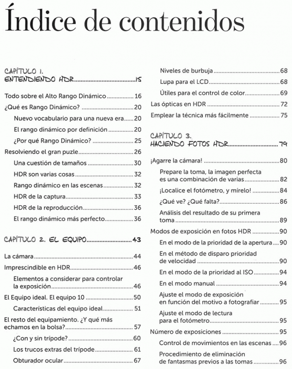 Este es un libro practico, aborda de forma fácil, intuitiva y sencilla como emplear la fotografía HDR para conseguir creatividad, belleza y detalle en sus fotografías.