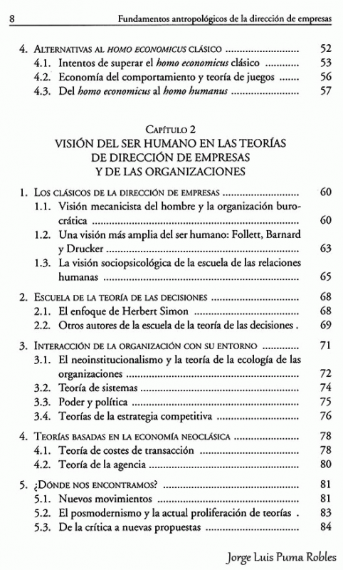 En la primera se revisa la idea de hombre subyacente en las teorías económicas y, sobre todo, en dirección de empresas y en la teoría de las organizaciones. Se analiza también qué aportan al conocimiento del ser humano las ciencias y qué visión del hombre proporcionan las principales religiones y teorías filosóficas.