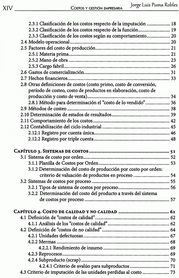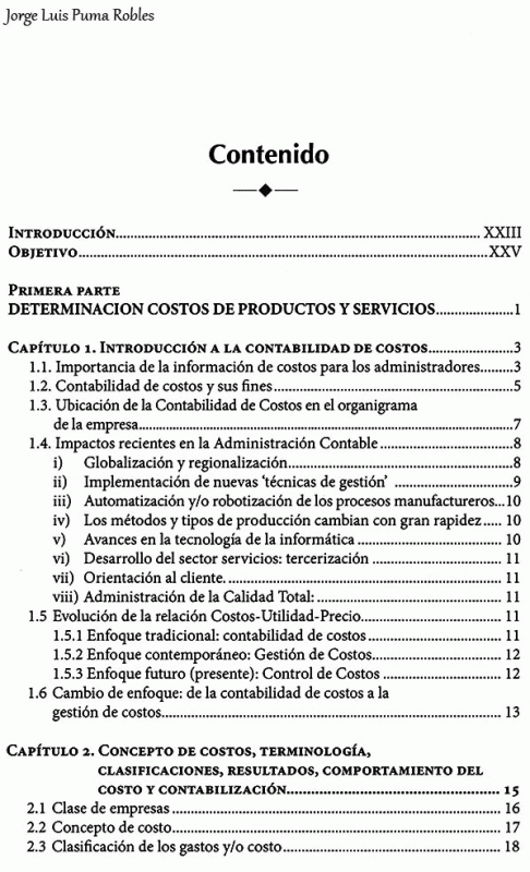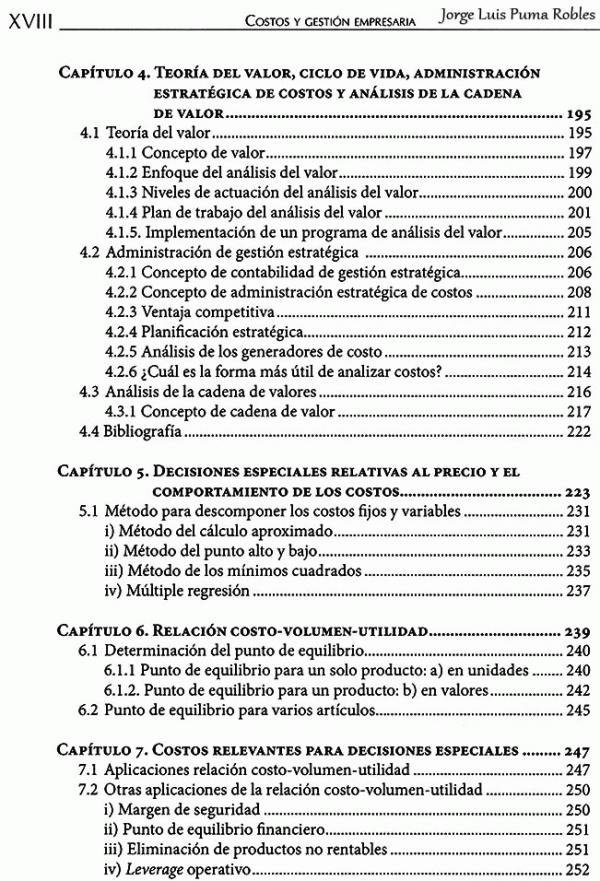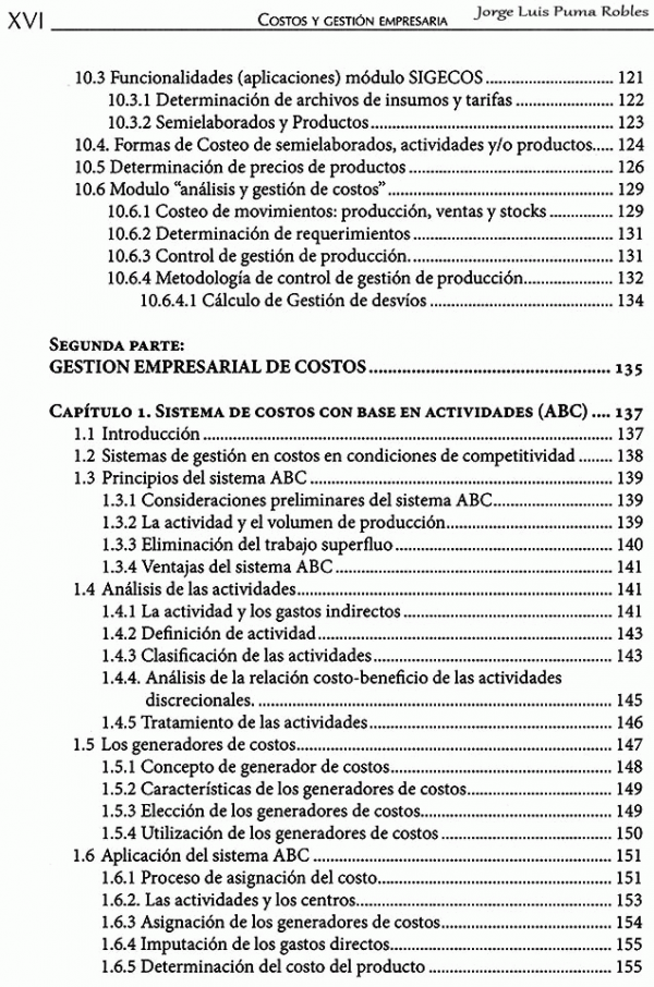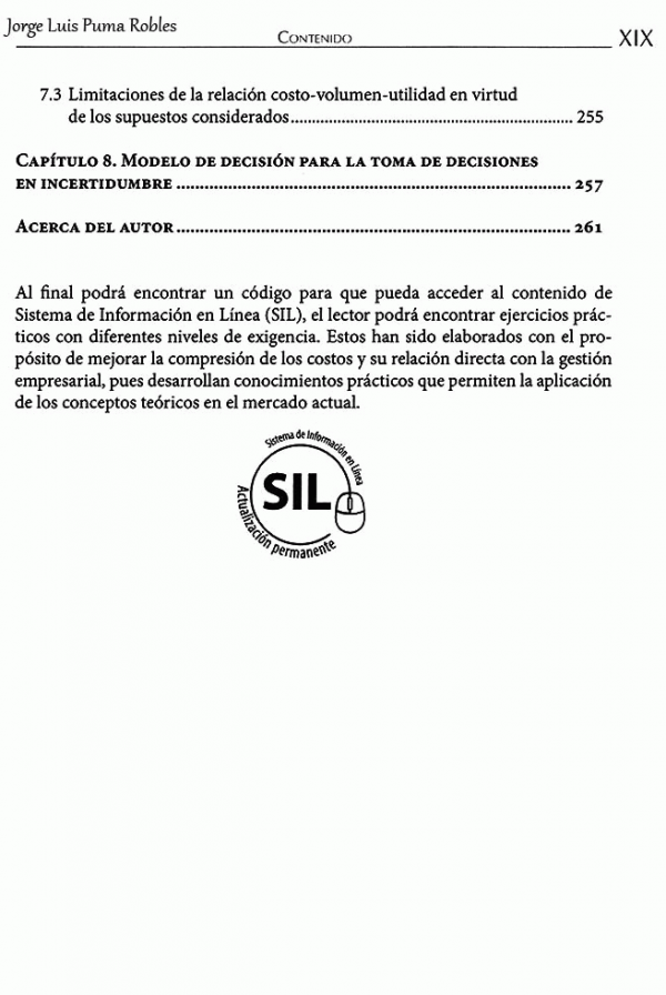 Esta obra es el resultado de una larga trayectoria profesional y académica del autor en los costos y su relación con la gestión empresarial. Está compuesta de dos partes: la primera estudia los diferentes métodos y sistemas de costos, mostrando las bondades y características de cada una, incluyendo el costeo mediante sistemas ERP (Enterprise Resource Planning); y la segunda explica cómo sacar provecho de la información de costos para realizar una mejor gestión empresarial y tomar decisiones que agreguen valor a la empresa.