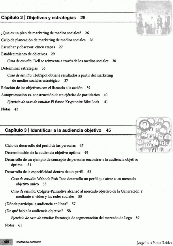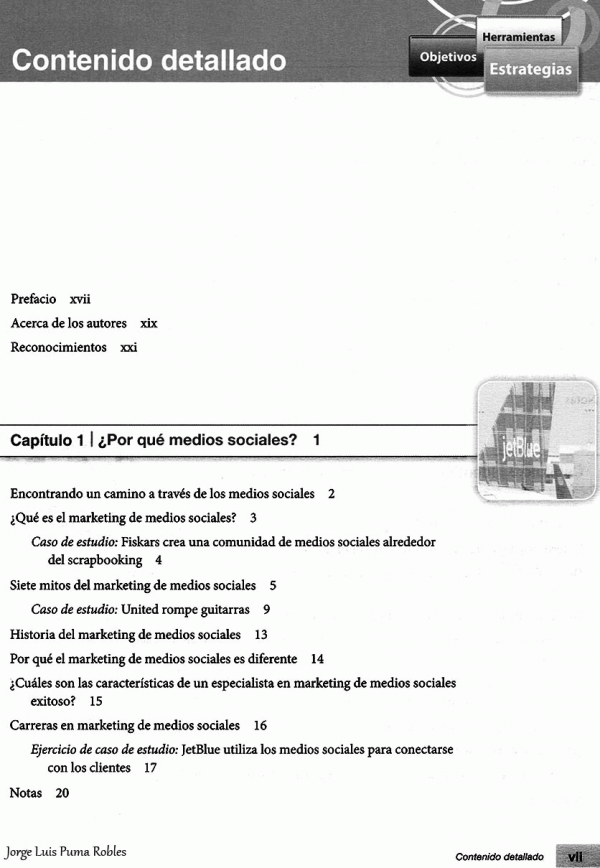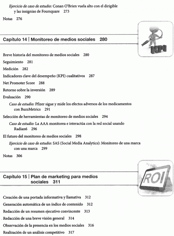 Marketing para Medios Sociales. Un planteamiento estratégico es un libro de texto pionero en el campo y cuenta con una distintiva base conceptual y una estrategia práctica para desarrollar planes de marketing para medios sociales.Aborda las reglas de compromiso y la ética de los medios sociales para comportarse adecuadamente como especialistas en marketing en la red social. Con estos lineamientos en mente, se examinan a detalle las tácticas de marketing más productivas de cada una de las principales plataformas de me dios sociales. Estas tácticas de plataforma específica, junto con todo el material de procedimiento incluido en el libro, se unen en el capítulo final para crear un plan de marketing exhaustivo para medios sociales, con explicaciones e ilustraciones detalladas de un plan aplicado en el mundo real. Se considera ampliamente el monitoreo, la evaluación y la mejora de la implementación de las iniciativas de marketing para medios sociales.Además se introducen y explican las mediciones cuantitativas y cualitativas de medios sociales más útiles, junto con diferentes formas de calcular el retorno sobre la inversión de una organización a partir de las actividades de marketing para medios sociales.