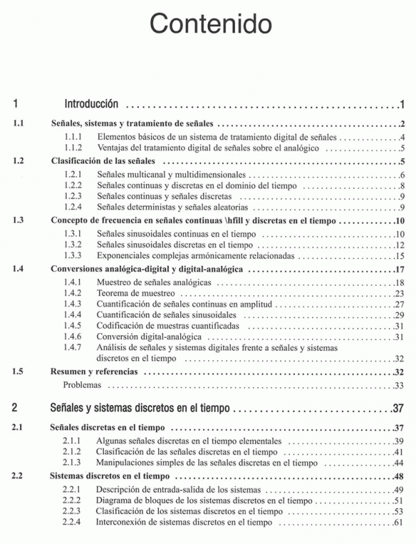 El libro es adecuado para cursos de uno o dos semestres de duración sobre sistemas discretos y tratamiento digital de señales. También es adecuado para un curso sobre tratamiento digital de señales de un semestre destinado a estudiantes universitarios de primer año.Se supone que el estudiante ha seguido cursos sobre Cálculo avanzado (incluyendo ecuaciones diferenciales normales) y Sistemas lineales para señales continuas en el tiempo, incluyendo una introducción a la transfor-mada de Laplace. Aunque en el Capítulo 4 se describen las series de Fourier y las transformadas de Fourier de señales periódicas y aperiódicas, lo mejor es que los estudiantes hayan adquirido estos conocimientos en un curso anterior.