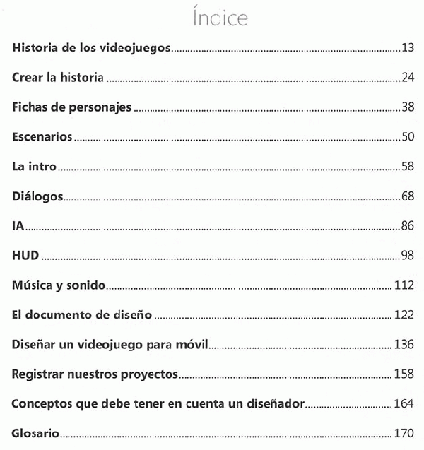 Pero el mundo de los videojuegos, como casi todos los procesos artísticos, parte de una idea, que gracias a un exhaustivo trabajo, se convierte en realidad. Este libro es un manual para poder convertir esa idea que tenemos en la cabeza en un producto. A través de estas páginas conocerás cómo se trabaja en la realización del guión, los personajes, escenarios, mecánicas de juego, inteligencia artificial... una pequeña ayuda para todos los futuros diseñadores que quieren embarcarse en la gran aventura de crear videojuegos.