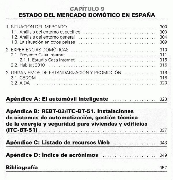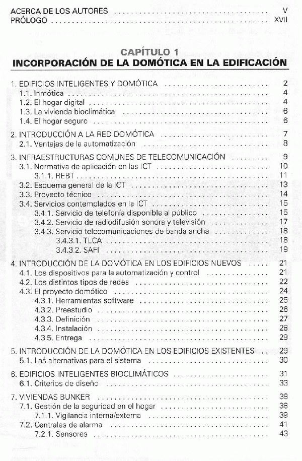 La presente obra está destinada a todos los usuarios y profesionales (promotores, constructores, arquitectos, ingenieros, electricistas, etc.) interesados en la incorporación de las nuevas tecnologías en los edificios, en particular las que tienen que ver con la automatización, el ahorro energético, la seguridad y el acceso a la información, para funciones de ocio, entretenimiento y confort. Su lectura permitirá adquirir los conocimientos necesarios para evaluar las aplicaciones que existen, conocer qué tipos de productos son necesarios para "domotizar" la vivienda o edificio, seleccionar la tecnología de acceso a Internet que hay que utilizar en su vivienda inteligente, elegir los protocolos más adecuados para interconectar los distintos dispositivos, etc.