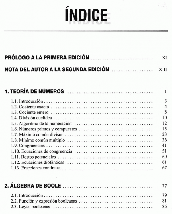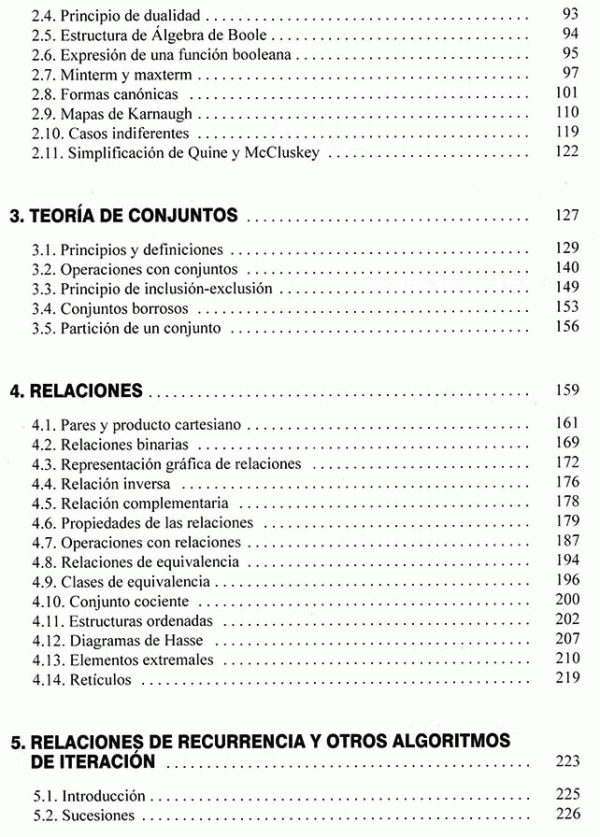 Esta nueva edición contiene, un capítulo nuevo dedicado a la lógica de predicados y se han añadido numerosos algoritmos en el campo de los números y de los grafos, además de haber corregido errores encontrados en la primera edición. El texto contiene: la teoría de números, álgebra de Boole, teoría de conjuntos, relaciones, recurrencias, análisis combinatorio, una ampliada teoría de grafos, con un capítulo especial dedicado a los árboles, grafos planos y coloreados y finalmente lógica de predicados.