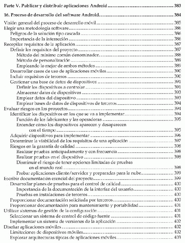 Resumen: Android se ha convertido en la plataforma favorita de muchos desarrolladores, debido quizás, a la gran variedad de dispositivos móviles donde funciona. Este libro es una magnífica práctica para crear aplicaciones Android a nivel comercial; una revisión actualizada y adaptada a la última versión SDK, 4.0. Aquí encontrará todos los fundamentos del sistema operativo, incluyendo la configuración del entorno, el diseño de sólidas interfaces, el desarrollo para diferentes dispositivos y la optimización de todos los procesos, desde el diseño hasta la publicación.