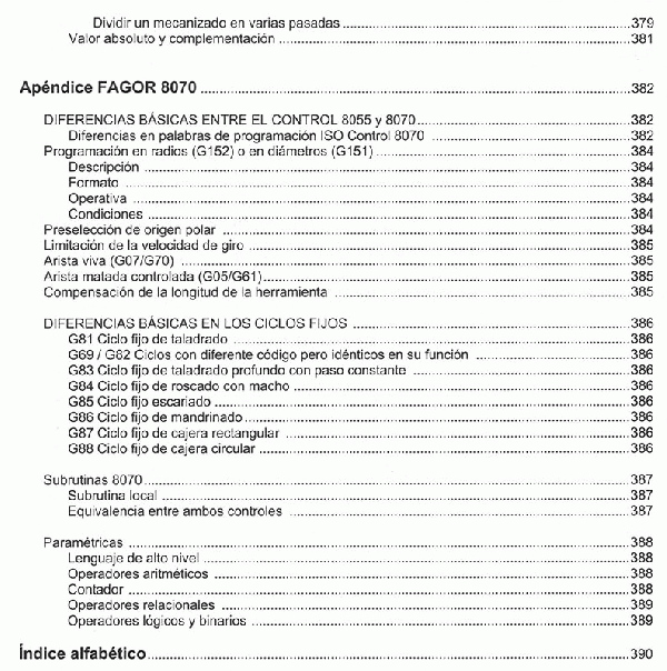Resumen: Este libro es una actualización y ampliación del anterior "Control Numérico y programación". El anterior estaba basado íntegramente en el control FAGOR 8025 y tenía un apéndice de actualización con el control 8055. Esta nueva versión está ahora enfocada íntegramente en el 8055 pero mantiene también la programación del 8025 y además incorpora un apéndice de actualización del control 8070.