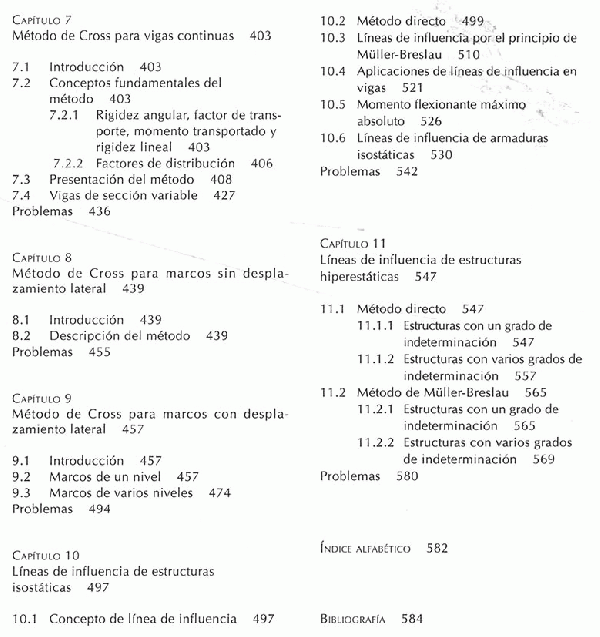 Este libro ha sido escrito con el propósito fundamental de ayudar a profesores y alumnos en la enseñanza y el aprendizaje del análisis estructural. Esta disciplina constituye uno de los pilares de la carrera de ingeniería civil y es también importante en algunas otras licenciaturas, como ingeniería mecánica y arquitectura. Su dominio es indispensable para los profesionales que se dedican al diseño de algunas de las obras más espectaculares que construye el ser humano: rascacielos, puentes, presas, plantas industriales, plataformas marítimas, etc. En todo el libro se hace énfasis en los principios básicos más que en aplicaciones específicas, ya que el autor considera que el dominio de estos principios es necesario para el estudio de métodos más avanzados o para la utilización de los excelentes programas de cómputo disponibles actualmente.