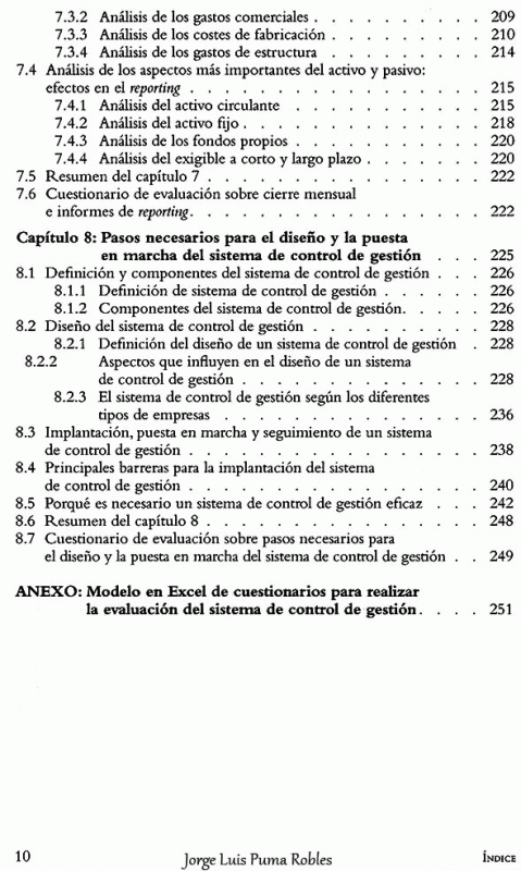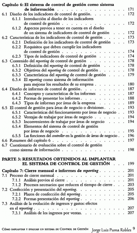 Este libro le enseña la manera de implantar y evaluar su sistema de control de gestión. De esta forma podrá evaluar el estado de su organización, definir las funciones del responsable de control de gestión, valorar el sistema de costes y de control presupuestario existente, verificar que el sistema de reporting facilita toda la información clave para el control de la actuación de los diferentes responsables, comprobar que dispone de un sistema de indicadores eficaz, así como analizar si dispone de un sistema de información que le sirva como guía para la toma de decisiones y el control de la consecución de objetivos.