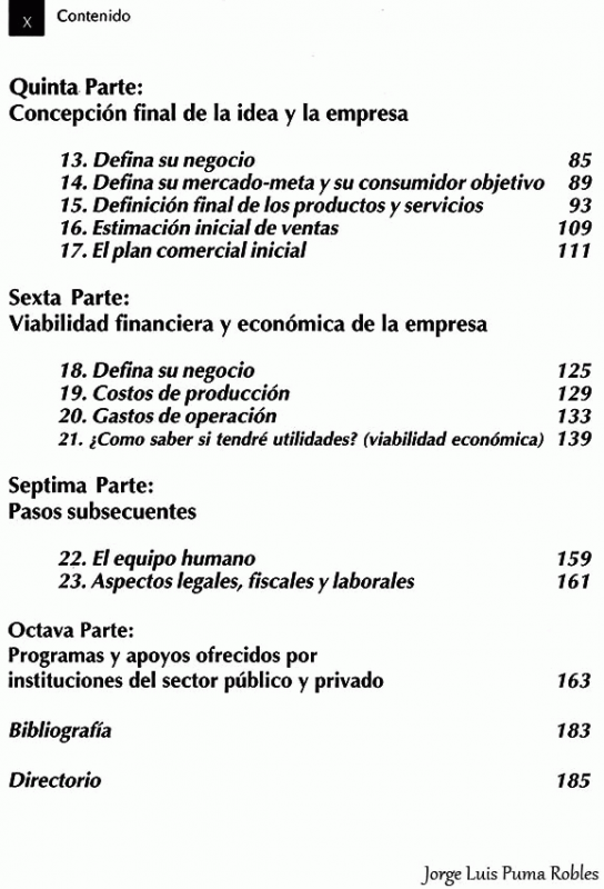 Obra dirigida a quienes poseen el anhelo e interés de crear una pequeña empresa sin importar su giro, con base en el deseo de no tener como única alternativa trabajar en una compañía ya creada y ser empleado ordinario. En este libro encontrará una explicación sencilla y amena sobre cuáles son los pasos necesarios para salir adelante. Partiendo de un enfoque mercadológico, el autor propone un primer paso para valorar el futuro del proyecto: "Si no le ve posibilidades de éxito comercial a su idea, no se preocupe por averiguar lo demás.
