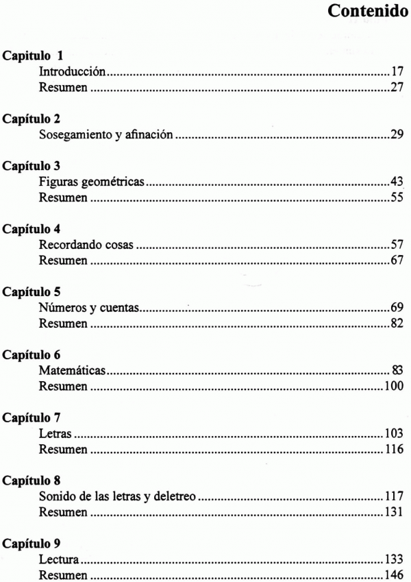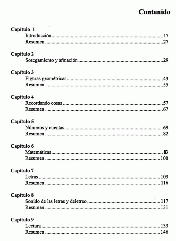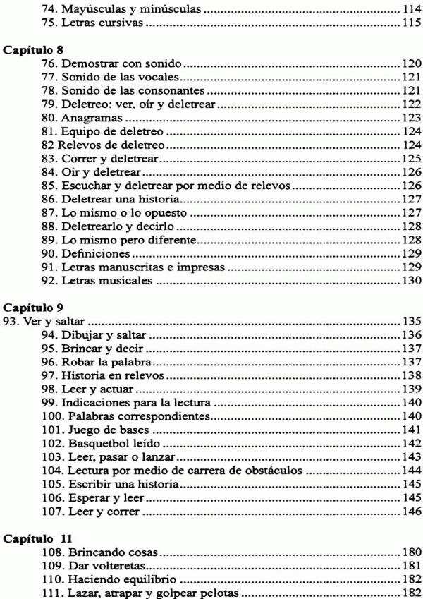 Dirigido a maestros y padre de familia, este libro presenta 111 juegos didácticos cuyo objetivo es aumentar las capacidades de aprendizaje (figuras geométricas, memoria, conceptos cuantitativos, alfabeto, lectura).